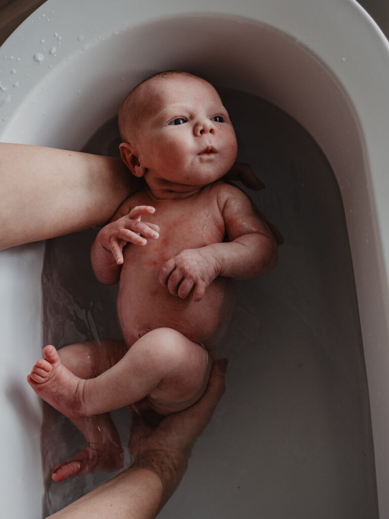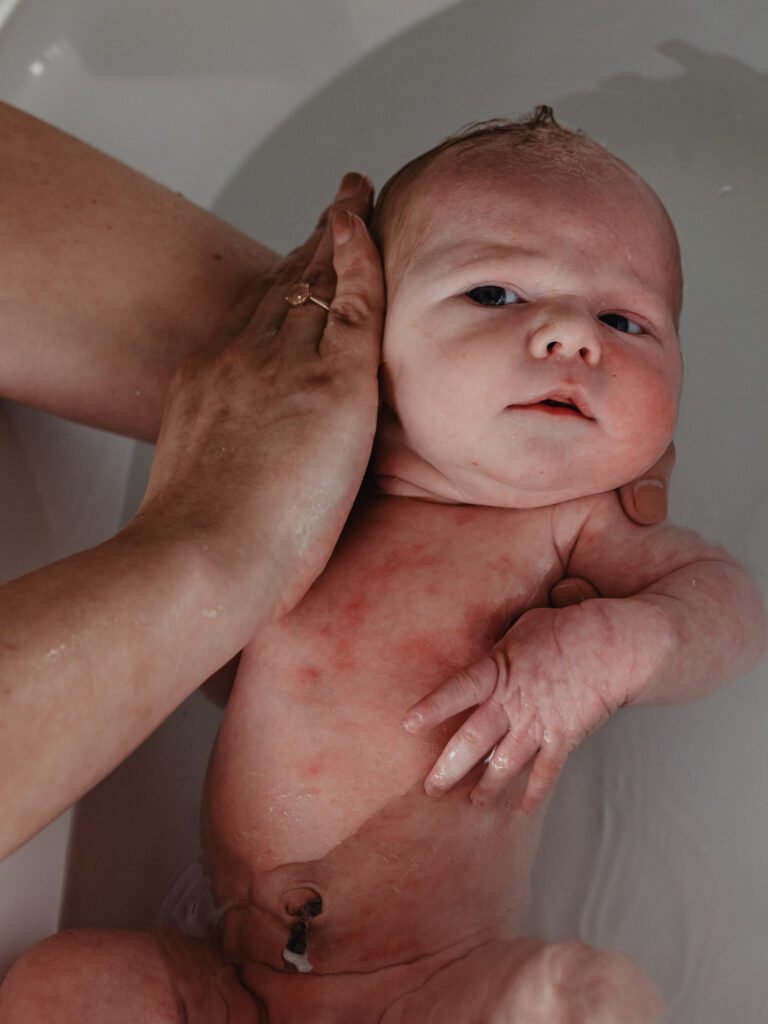 De kraamhulp was de dag ervoor voor de laatste keer geweest en mama was ondanks de ongeplande keizersnede sterk genoeg om haar mannetje in bad te doen.